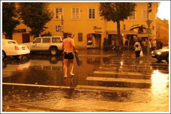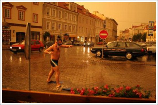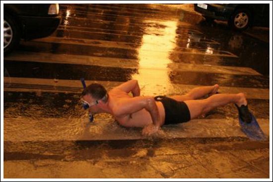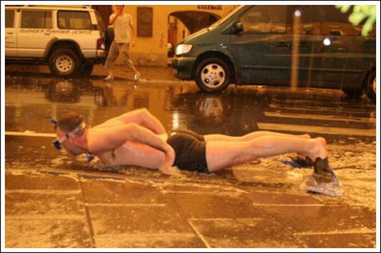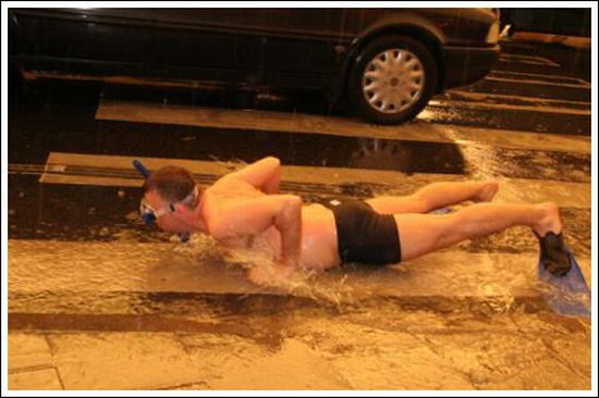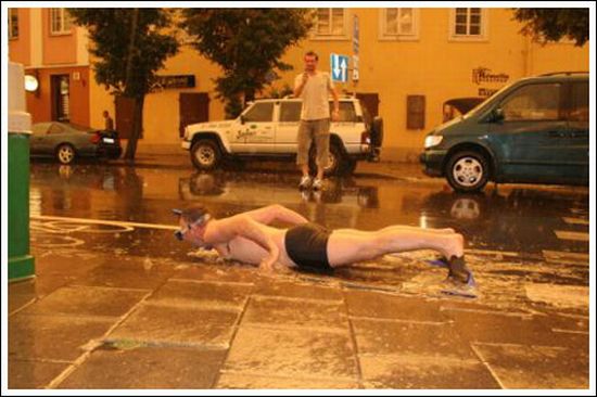 ΔΕΙΤΕ: Κολυμπώντας στη βροχη...και στο τσιμέντο...