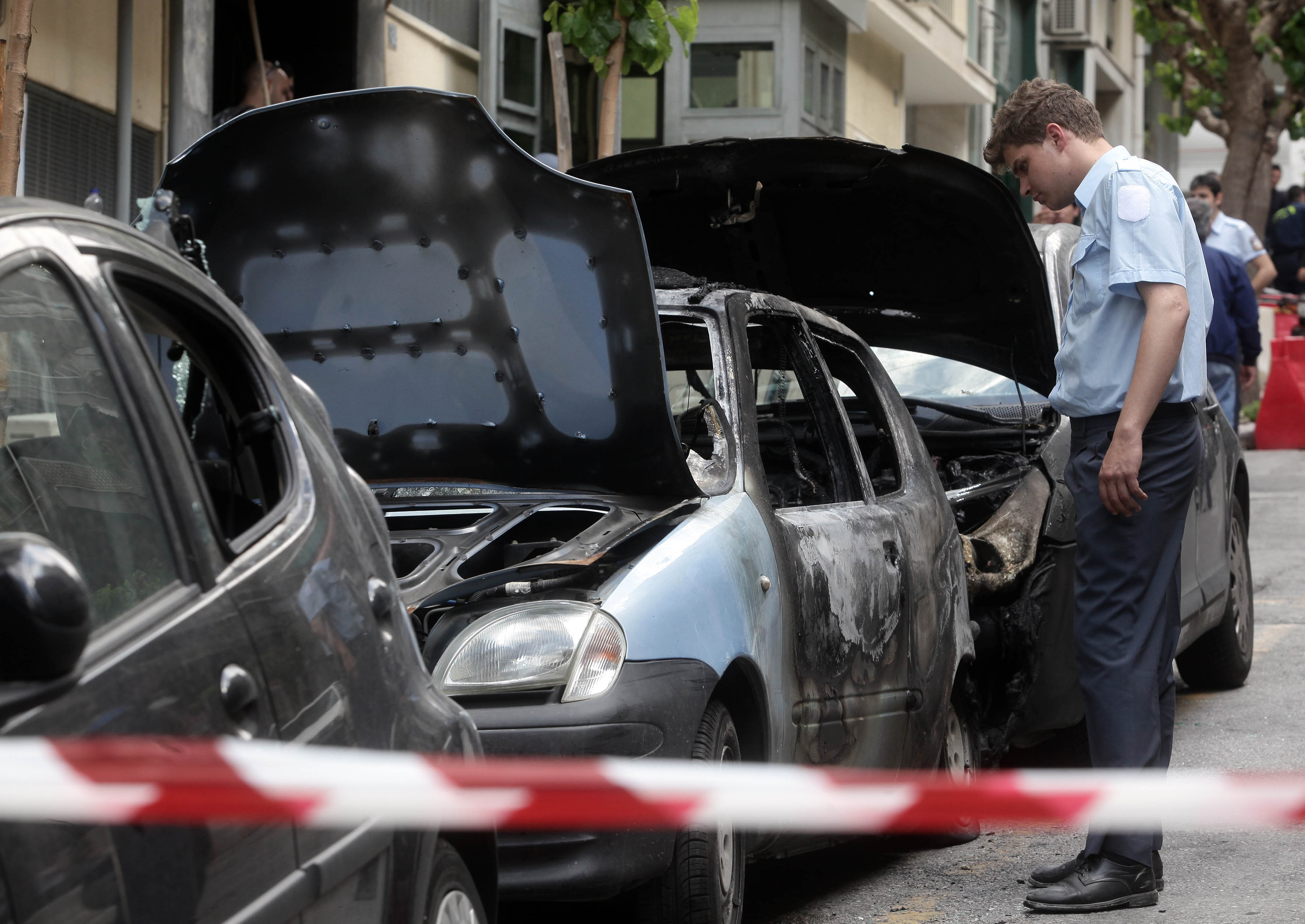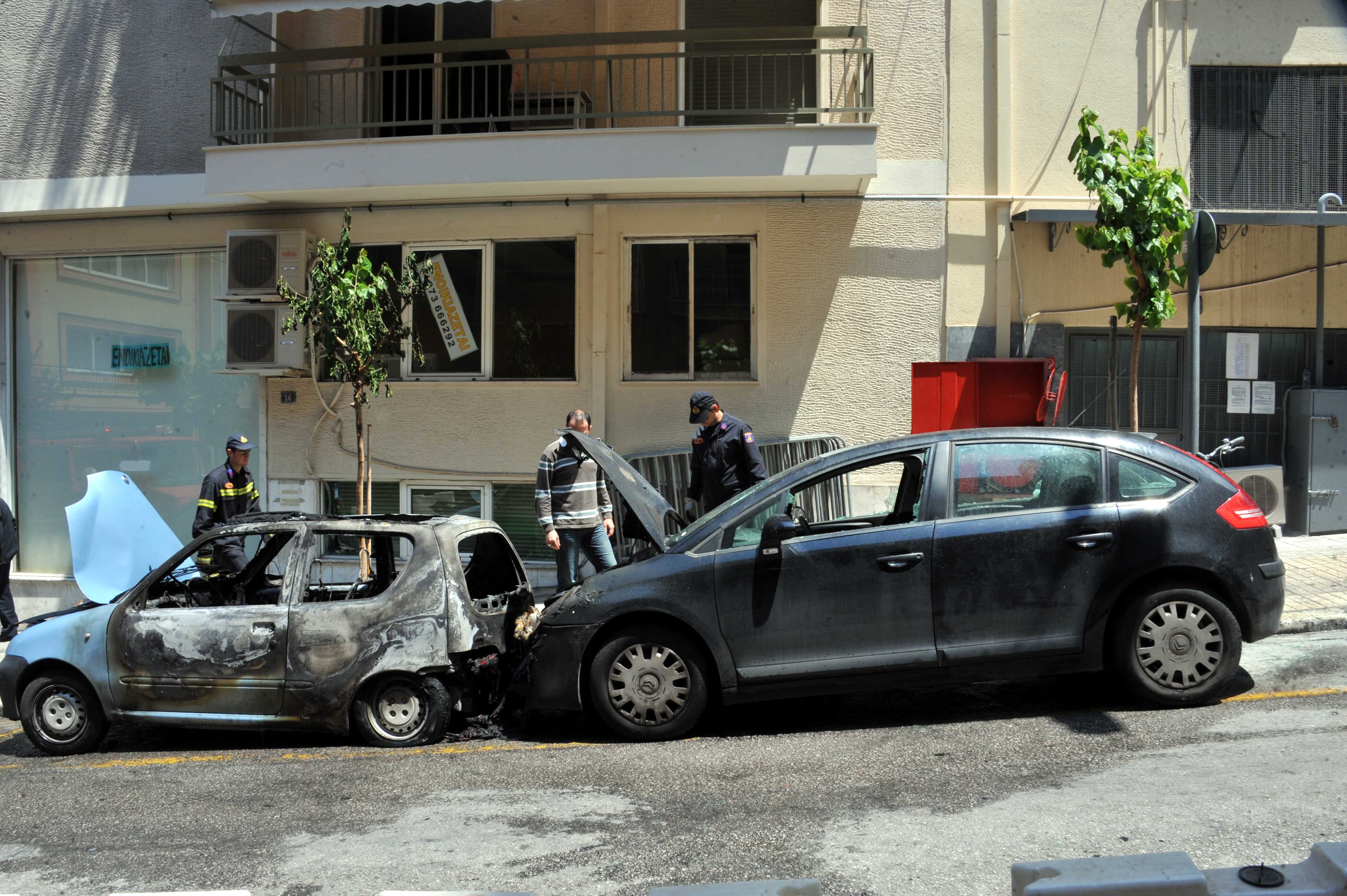 Στη συνέχεια, χρησιμοποιώντας λοστούς, έσπασαν τους υαλοπίνακες τριών αυτοκινήτων και με εύφλεκτο υλικό που έριξαν εντός της καμπίνας προκάλεσαν σε αυτά εκτεταμένες ζημιές. Πρόκειται για δύο ιδιωτικής χρήσης αυτοκίνητα και ένα συμβατικό όχημα του Τμήματος Ασφαλείας Εξαρχείων.