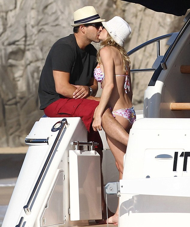 Το πρόγραμμα των διακοπών του ζευγαριού περιλαμβάνει ηλιοθεραπεία, βουτιές και... καυτά φιλιά πάνω στο σκάφος.